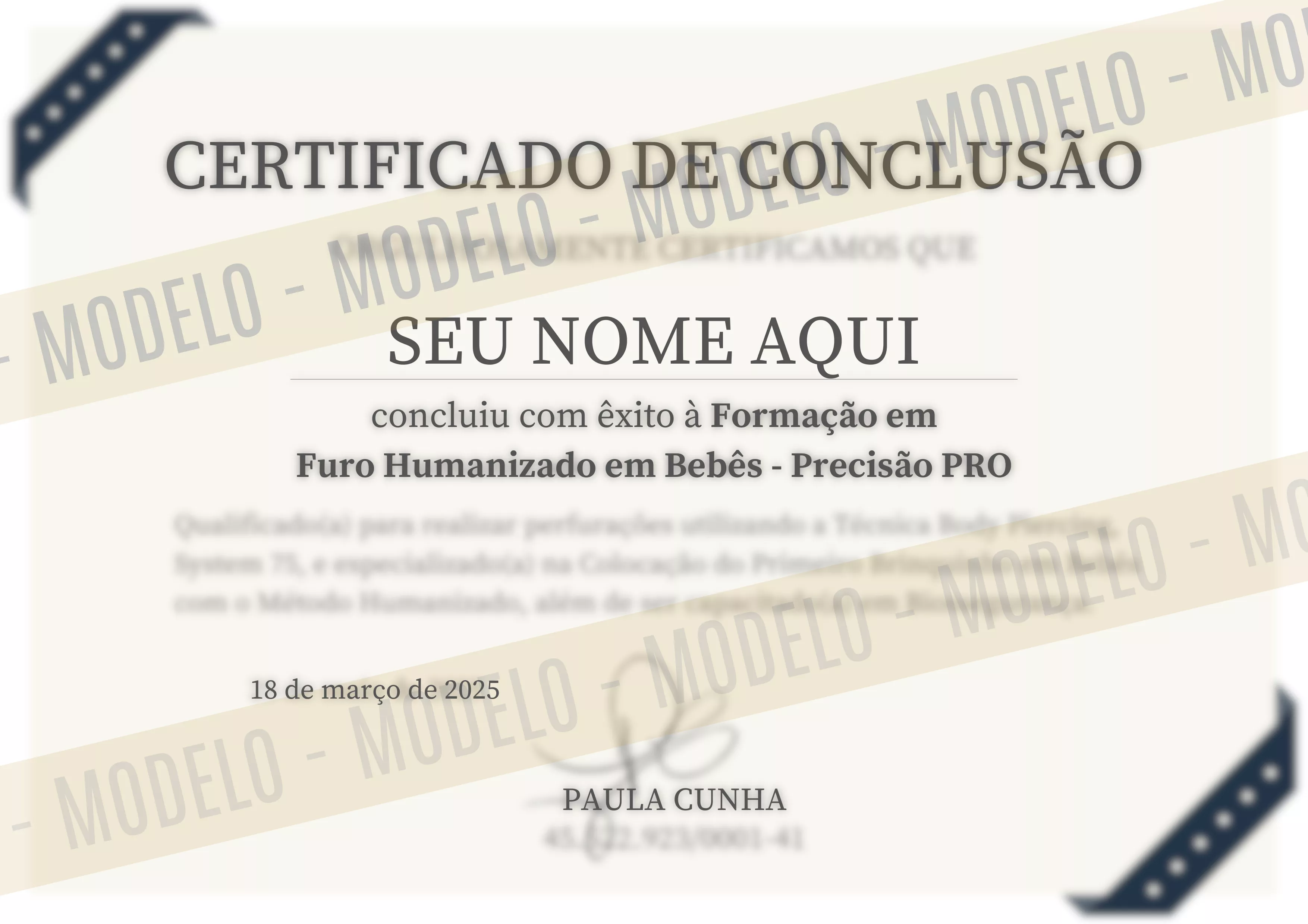 Ao final, você receberá seu Certificado de Formação em Furo Humanizado em Bebês